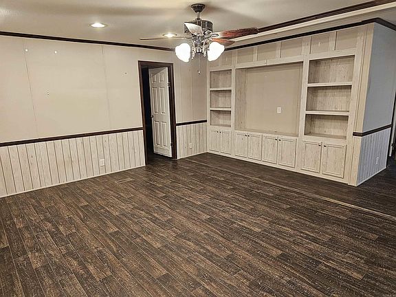 This gorgeous home has an open floorplan, a large kitchen island and a walk-in pantry. With almost an acre of land surrounded by trees and convenient to town. There is a storm shelter, gazebo, carport and fully fenced back yard. The floorplan offers a private primary suite with a walk-in shower, garden tub and a walk-in closet. This 1876 square foot home has 3 bedrooms and 2 full bathrooms. Schedule your appointment today.