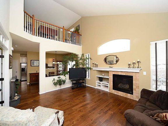 Beautiful end unit townhome on quiet cul de sac siding to expansive open space! The main level features hardwood floors, a nice open floor plan, family room with gas fireplace, dining area with access to the patio and study with French doors. Kitchen with stainless steel appliances, upgraded cabinets and tile backsplash. Upstairs level includes a loft, master bedroom with a private retreat, 5pc bath and his/hers closets. The secondary bedroom features vaulted ceilings and an add?l full bath. Throughout the home you will find custom neutral interior paint, upgraded lighting and upgraded fixtures! The finished basement offers a rec room and full bathroom. Enjoy a low maintenance lifestyle with a small side patio. Great location with mountain views, close to trails, walking paths, shopping, restaurants and I-25!