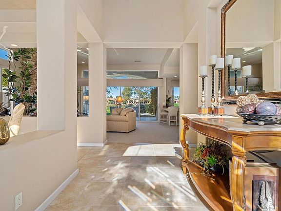Sky's the limit with this rare Bougainvillea 2 floor plan. Situated on one of the largest lots in Indian Ridge and surrounded by lush views of the 18th hole of The Grove Course, you won't find a better chance to get creative with your outdoor living space! If you want to add a pool or guest casita, this house has more than enough room -- unleash your inner designer and create something truly unforgettable! The inside of the house is where you'll really appreciate this luxurious listing. Let's start with the open floor plan that was made for entertaining. Natural light floods every room in the living area, making this already spacious and grand home feel even bigger. Inside, all three bedrooms come with en suite bathrooms for added luxury and convenience. But it's in the primary bedroom that you'll truly find yourself swept away. It looks out to an incredible view, and the bathroom has recently been remodeled, so now it's just waiting for a touch of personal style! Granite countertops stretch across the kitchen, accompanied by a newer dishwasher and refrigerator; perfect for whipping up delicious meals or catering festivities. There really is no limit to what you can do with this gorgeous property -- make it yours today! Furnished per inventory list and no wait for Club Membership!