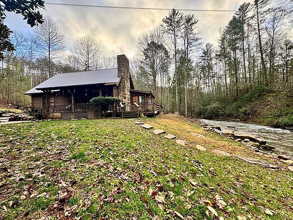 Welcome to your dream creekside retreat! This charming 1.5-story cabin offers the perfect combination of rustic charm and modern comfort, nestled in a peaceful wooded setting. Featuring 2 bedrooms and 1.5 bathrooms, this home is thoughtfully designed for relaxation and practicality. The cozy interior includes a stunning wood burning stone fireplace, perfect for chilly evenings. Step outside to enjoy the sounds of the flowing creek from the inviting front porch or explore the beautifully landscaped surroundings. Whether you're seeking a weekend getaway, a vacation rental, or a serene full-time residence, this property has everything you need to create lasting memories. Interior photos are forthcoming—don't miss the chance to experience this hidden gem in person. New metal roof 2022 New HVAC ;2022 Tankless water heater 2018 Septic tank inspected/serviced 2018 Main bath has both an oversized jetted tub and tile shower *Buyer to verify all information before making informed offer.