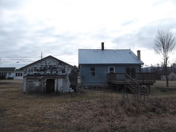 7 room, 4 bedroom 1 bath cape with 1215 feet of living space. Full unfinished basement. Covered front farmers porch, rear deck. Metal Roof. 2 car garage in need of repairs. All located on a large 3.9 acre lot.