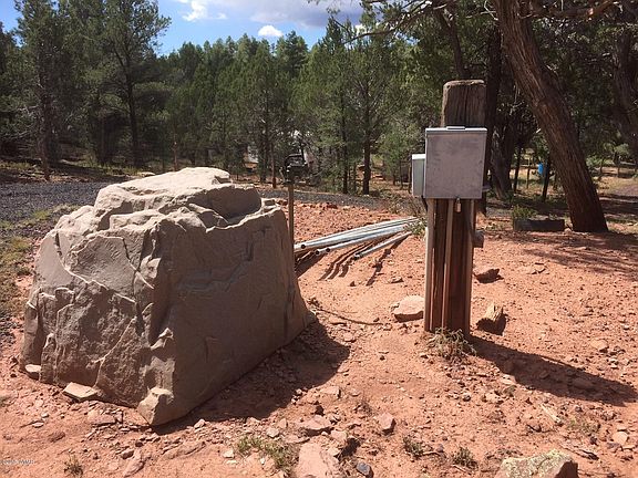 Ready for you to build a 3/2 home, this gorgeous parcel has everything you could want for a mountain retreat. Tall trees, utilities available, room for horses, views and lots of peace and quiet. Less than 8 miles from Show Low on mostly maintained roads. Travel trailer conveys at no value. Driveway is partially shared with the neighbor.