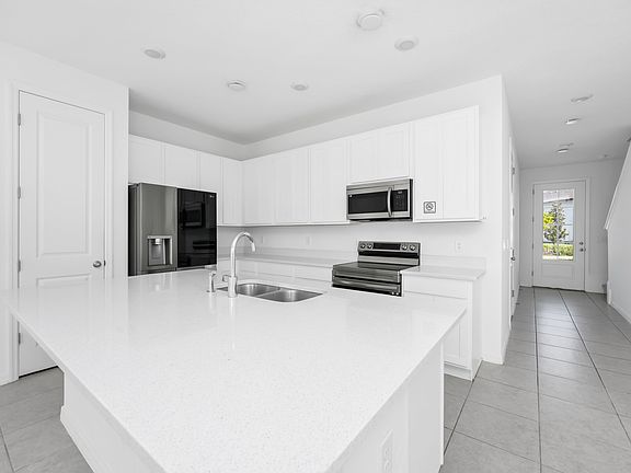 Welcome to The Enclaves at Festival! Gorgeous town-homes located in the highly desirable, Champions Gate area. This beautiful home has a sunny bright, open kitchen with plenty of upgrades such as beautiful 42 inch white cabinets, all stainless steel Whirlpool appliances including cook range, dishwasher, and microwave. Enormous island with Quartz counter perfect for gatherings that is open to the great room and dining area. Main living space on first floor features ceramic tile flooring and bedrooms with upgraded Shaw stain resistant carpet for comfort. Enjoy the resort style amenities with a swim in the beach walk-in community pool, kids' water park, fitness center, 18 hole miniature golf, and beach volleyball court. This home is conveniently located to shopping, grocery stores, Posner Park, Champions Gate Village and Walt Disney World. Please contact with me to move in to this beautiful townhome! Washer, Dryer and Fridge are also included.