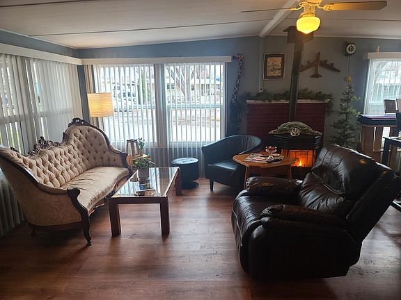 2 bedroom 2 bath mobile home with a large fenced yard and backing to DWP land. Quiet location. Dual pane windows, laminate floors, new front and back doors and a cozy pellet stove for heat. This mobile feels like home! Popout for office off 2nd bedroom and barn doors for space saving and charm. Adult park 55 and older.