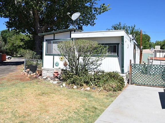 This cute 60's trailer has potential! There is an add-on with washer and dryer and a pop-out for extra space. The yard is shady and cool with a nice deck facing southwest to enjoy the evening Sierra sunset. Will need updates but with a little spit and polish you can make it as sweet as many of the other vacation/retirement homes in this great little park located in the heart of downtown Bishop.