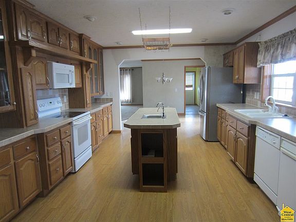 This home has the bells and whistles. 3 bedroms and 2 full baths on the main floor. Living room and family room on the main floor. Beautiful kitchen with more than enough cabinets upstairs and then there is another complete kitchen downstairs. Large laundry room on the main floor also. Full walk-out basement has plenty of room, with family room, kitchen, full bath with a walk-in bath tub, shower and a sauna and another room that could be the 4th bedroom or office with large walk-in cedar lined closet. Outside there is a screened in porch, patio area, detached garage, storage shed and a pond. According to the floor plans there are 2,872 sq ft finished in this home on 2.3 acres m/l.