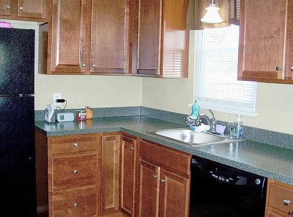 Beautifully maintained home has been completely updated. Abundance of cherry cabinets ~ all KIT appliances included. Remodeled BA w/ tile flr. Refinished hdwd flrs. Here is a bonus: flat-screen TV in LR is included! Large deck wraps around into large, flat back yard w/ privacy fence & new shed. Move-in ready!