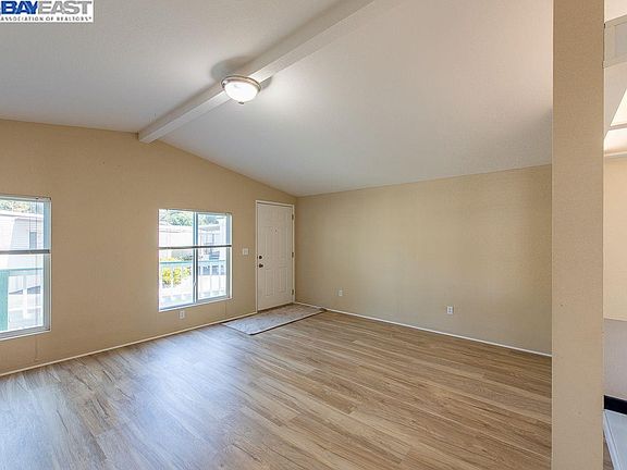 Spacious 1,120 Sq. Ft. sunny home features a light-filled floor plan with a large, open living room and dining room with breakfast bar in kitchen. The interior boasts brand-new, luxury vinyl plank-flooring in living room, dining room and hallway. Brand new carpet in both bedrooms. Freshly painted exterior. Front deck with beautiful, panoramic view of the rolling hills of Niles Canyon. Dual pane windows, high ceilings and kitchen skylight. Oversized carport will easily accommodate 3 cars. Large storage shed and low-maintenance yard. Located in the highly desirable Niles Canyon Mobile Home Estates…a lovely senior 55+ park that offers a year-round heated community pool, clubhouse, sauna & spa, plus many community activities. Fabulously located just minutes to downtown Niles!