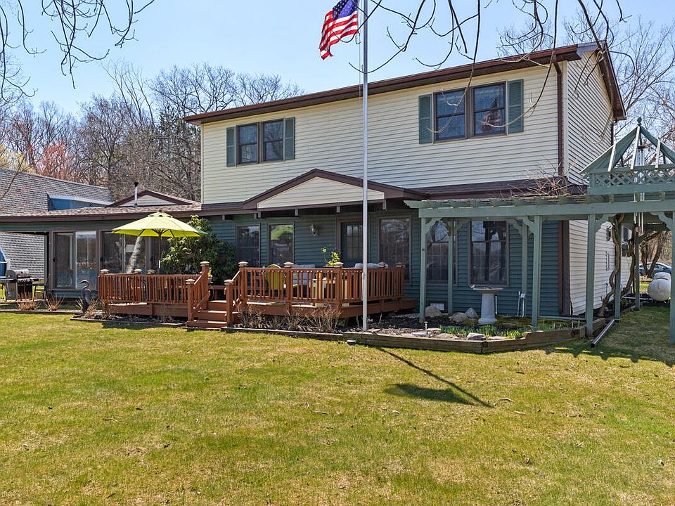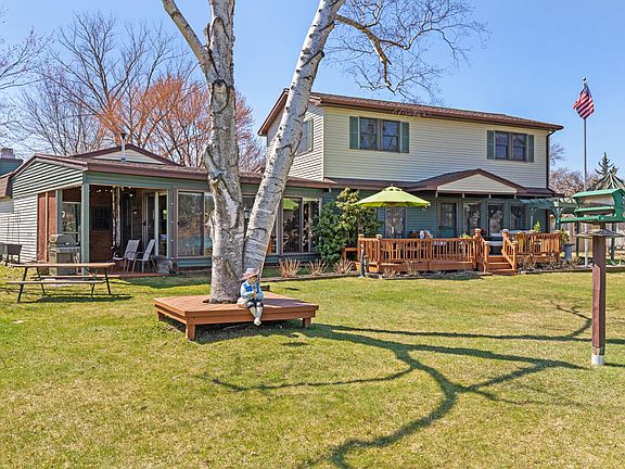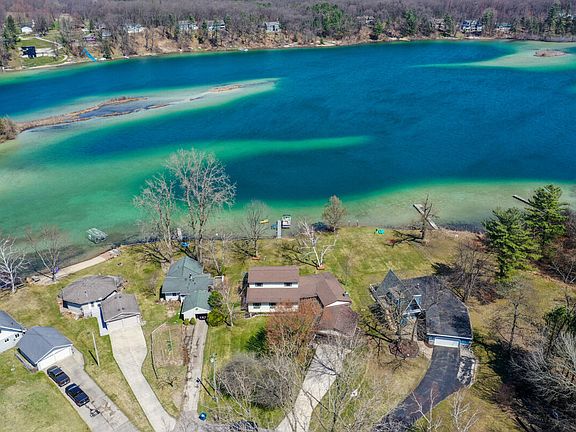 Welcome to the Caribbean-like turquoise waters of All Sports Burgess Lake. Relax, take off your shoes and be captivated by the 75' of private frontage with a level walk to the water's edge. Whether you enjoy this as your lake home or family cottage you will find plenty of space and incredible lake views from most rooms. The interior features 4 bedrooms plus an in-law suite with a fireplace and wet bar (could be a fun family room or 5th bedroom). There is a very large and appealing four season sun room with an efficient pellet stove for year-round enjoyment. Gas fireplace in living room and wood fireplace in family room/suite. This home has been enjoyed by the same family for decades. High end Anderson windows were installed through-out. Backyard features a rear deck and grab your towel because the dock is waiting for you (paddleboat included). Main floor features a spacious foyer, living room, kitchen, dining area, 2 bedrooms, 1.5 baths, main floor laundry, in-law suite/5th bedroom and large sun room. 2nd floor features 2 more bedrooms and a private bathroom. Additional features include a large storage shed off the garage and underground sprinkling. This is a fantastic opportunity to acquire that dream home on an incredible body of water.