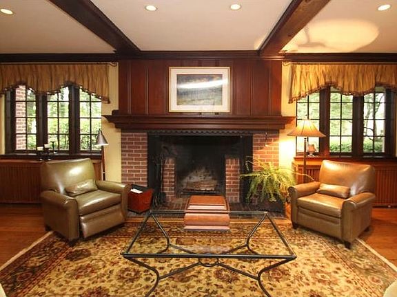 Grand Tudor with lovely setting overlooking the river crafted by European artisans was designed by the renowned architect, William A. Klemann. This 5 bedroom, 2 garage house has grand features including high ceilings, custom-built solid-wood doors, cherry paneled foyer, hard wood floors, and rich stained moldings, and archways, Mercer tile, large Living Room with warm brick hearth fireplace, custom bookshelves continuing through to the Library. Formal Dining Room with open kitchen floor plan with gas cooktop, Thermador double oven, and a true butler's pantry sure to impress. First Floor Guest bedroom and sunroom. Master Bedroom suite with full dressing Room and walk-in wardrobe, 2 more window bright bedrooms. Lower level spacious Family Room offers brick fireplace, wainscoting, recessed lighting, and back staircase, exercise room. Sliding doors from kitchen lead to a patio, fenced yard, lush landscape. Close to 95, Trenton and Yardley trains, biking and walking canal, Yardley village stores and restaurants.