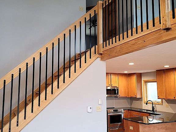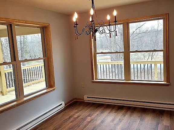 New home is 3 story modified Chalet. All wood Cabinets, granite counters, all floors are vinyl planks, solid wood doors, features matt black lighting and plumbing fixtures, mud room, generous sized 1st floor family room large bedroom closets, large loft on 3rd floor, covered /uncovered deck. House has great light from windows.