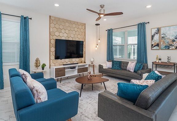 This property is a corporate rental. Please note that the monthly rental price for this property is dynamic and subject to seasonal adjustments. For an accurate quote, provide us with your intended move-in and move-out dates. ChampionsGate Resort Vacation Pool Home - includes resort clubhouse amenity access! Our 8 bedroom, 5 bathroom, private vacation pool home is a great option for families wanting a home base to enjoy the best of all that Central Florida has to offer. * ChampionsGate Resort Private Pool Home Sleeps up to 18 * 8 bedrooms / 5 bathrooms * Private Pool w/ Spa - East Facing * Game Room including Pool Table, Shuffle Board, Foosball and Darts * Theater Room * Themed Bedrooms: including Mickey Mouse and Disney Princesses * Dog-Friendly +$ * ChampionsGate Resort Gated Community * 10 miles to Disney World property * Fully equipped Kitchen with seating for 9 at the dining table, and 5 spots at the breakfast counter BEDROOMS (First Floor) - Bedroom 1 - Master King Suite 1 - One King Bed / Attached Bathroom / 50-inch Smart TV - Bedroom 2 - One King Bed / Shared Bathroom / 50-inch Roku TV BEDROOMS (Second Floor) - Bedroom 3 - One Queen Bed / Shared Bathroom / 50-inch Smart TV - Bedroom 4 - One King Bed / 50-inch Roku TV - Bedroom 5 - One Queen Bed / Shared Bathroom / 50-inch Roku TV - Bedroom 6 - Twin/Double/Twin Trundle / Shared Bathroom / NO TV - Bedroom 7 - Two Twin Beds / NO TV - Bedroom 8 - One King Bed / Shared Bathroom / 50-Roku Smart TV Security Camera Location Disclosure: Front Entry Dog-Friendly Home (+$) *This is a dog-friendly home *There is an additional $200 plus tax nonrefundable fee * There is a two-dog limit * Dog(s) must be disclosed and the additional fee must be paid prior to arrival. Pool & Spa Charges and Information: There is an additional optional charge of $30 per day plus tax to heat the pool/spa. The spa will not warm up without the added pool heat. Please note that our pools are serviced on a weekly basis. Resort Parking Rules: The resort allows a maximum of 5 cars (or 3 large passenger vans). Do not block the sidewalk or park on the street or the resort will fine you. For visitors, there is a maximum of 10 cars per property. ChampionsGate Resort Amenity Access Included with Rental: We are pleased to offer two clubhouses at Championsgate Resort- this property is located closest to the Retreat Clubhouse It is a 3-minute drive or 11-minute walk to the Retreat clubhouse from this property address. * Huge resort-style pool with pool-side cabanas * Exciting water slide * Relaxing windy lazy river * Interactive children\'s splash park * State-of-the-art fitness center * Movie theatre * The Grille restaurant * full-service restaurant * 18-hole challenging golf course * Pool-side tiki bar * Playground * Volleyball courts Distances from Resort to Shopping & Attractions: * Walt Disney World - 10 miles * Universal Studios - 21 miles * SeaWorld - 18 miles * Orlando Airport - 30 miles * Atlantic Coast Beaches - 78+ miles * Gulf Coast Beaches - 84+ miles * Publix Supermarket - 2 miles * Walmart - 7 miles * Dining - 2 miles Why Choose this Rental? * Professionally managed to serve all your needs * Management company has over 26 years of experience hosting well over 200,000 families * Go straight to your rental with online email check-in * 24/7 on-call maintenance * No Resort Fees * Free On-Site Parking * Smoke-free and pet-free for your comfort * Towels and linens are provided * Complimentary WiFi * Additional Rental items Available (e.g., 3 & 4 burner BBQs, cribs, pack-n-plays, strollers, high chairs, etc.) Our starter welcome packet supplies: * 2 rolls toilet paper per bathroom * 2 round hotel-size bar soap per bathroom * 1 hotel-size shampoo/conditioner per full bathroom * 1 roll paper towel * 1 packet dishwasher detergent * 2 trash bags size-13-gallon * 1 small box laundry detergent (enough for one load) * Garbage can liners in each bedroom/bathroom small garbage cans Any supplies beyond this are up to the guest to replenish, we do not restock these items. No salt/pepper or cleaning supplies are stocked due to safety issues. This is an industry-standard practice. FOR GUESTS WHO BOOK 30 NIGHTS OR LONGER STAYS: (this does not apply if you are staying less than 30 nights) We will collect a $1,500 deposit. Balance is due 60 days prior to arrival If canceled 90 days or more before arrival, we keep with us $250.00. $1,250.00 will be refunded. If canceled between 61 and 89 days prior to arrival, we keep with us the $1,500.00 deposit. No cancellation or modification 60 days or less prior to arrival. Contact us to schedule a showing.