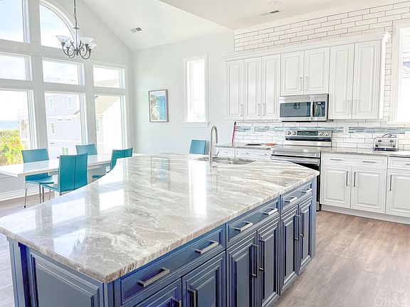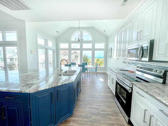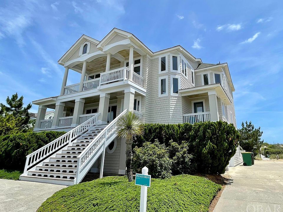 Stunning Corolla oceanfront renovation in the highly coveted Buck Island neighborhood. Most every aspect on the inside has been updated including all new interior paint, flooring throughout, furniture, appliances, countertops, etc. Set up as a reverse floor plan, the top level is the perfect place to gather with large groups and enjoy vast ocean views while living in luxury. The great room and the kitchen flow together seamlessly and there are plenty of seating inside and out. In addition, there is a custom bar is made out of the real stern of a boat! The mid-level boasts three primary bedrooms, two of which have king beds and all have updated bathrooms. There is also a bonus area with custom built in bunks. The ground level serves as another entertainment area that has a pool table, theater room, and the remaining three bedrooms that include a queen, two bunks and two doubles. Brand new 50 year roof installed October 2022. This remarkable home is located in a gated community within walking distance of shopping, restaurants, and entertainment.