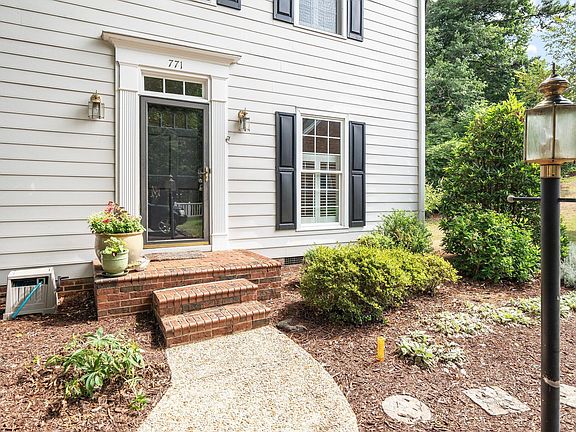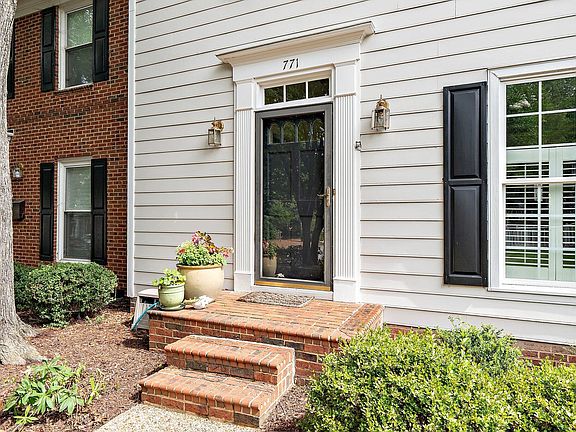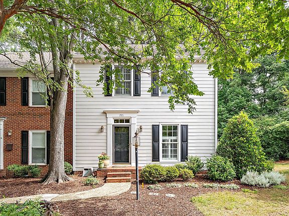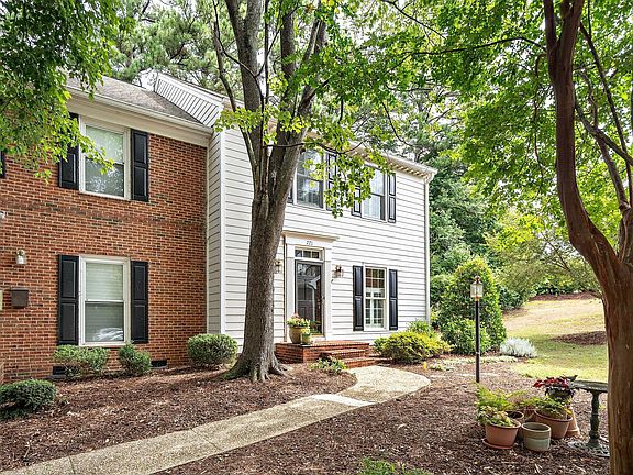 Located minutes from 540, this charming end unit townhome features 3 spacious bedrooms and 2.5 baths. First floor has open floor plan with masonry fireplace, wood flooring and plantation shutters. Large main floor laundry room includes washer and dryer. Eat-in kitchen even has a pantry. There is potential to customize your home with a walk-up attic ready to be finished. Relax on the deck overlooking a serene wooded backyard. Store your outdoor gardening equipment and other items in your own storage shed. No lawnmower needed as the HOA takes care of the lawn maintenance for you. This home combines comfort and potential, making it a perfect choice for your next move.