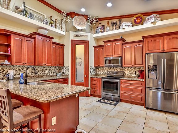 EXQUISITE LUXURY HOME! This gorgeous custom-built 4/2.5 home is situated on a large corner lot in a quiet area of Sun 'n Lake of Sebring. The brick paver circular drive leads you up to double doors that open into soaring ceilings adorned with crown molding and classic tiled floors throughout. The family chef will love the kitchen with its rich wood cabinetry, granite tops, tiled backsplash, closet pantry and upgraded stainless appliances. Gathering spaces include both a large living room and family room. An inviting master suite boasts tray ceilings, his and her walk-in closets and luxurious bath with double vanities, garden tub and step in shower. The fourth bedroom at the front of the home would make a perfect home office if needed. A jack and jill bath sits between the second and third bedrooms, perfect setup for a second master suite as well..and check out the huge walk-in closet with built ins. An integrated whole home audio system is included in the many upgrades this beautiful home has to offer, as well as dual a/c units for energy savings and new roof in 2022. The fabulous outdoor lanai is equipped with a full kitchen including double ovens and custom bar, perfect for entertaining or family gatherings. There is also space to add a pool if desired. Schedule an appointment to see your new home today!