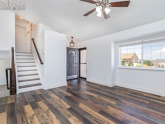 Welcome Colorado Springs to the embodiment of the American Dream! This incredible, 4 bedroom, 3.5 Bath, 2,400 SQ FT home is strategically positioned only 10 minutes from the Fountain town center providing quick access to all the commercial amenities you could ever need. Additionally, this home is only 10 minutes to the Colorado Springs Airport and Peak Innovation Center, and only 15 minutes to Fort Carson and Peterson Air Force Base. The neighborhood exudes pride of ownership and private living, with wide streets and sidewalks on both sides of the street, making this oasis perfect for enjoying an evening walk. This beautiful quad level home sits on a rare, quarter acre lot, featuring an expansive backyard with a beautiful deck providing serene, panoramic views of the front range – providing daily views of the majestic Colorado sunset. Inside the home, you’ll find an exceptionally functional split level floorplan. The main level greets you with a bright and open formal dining space with an expansive kitchen providing an abundance of storage and food preparation space, stainless steel appliances, a gas range and a walkout to your backyard deck. The lower level features a generous living room space with large windows letting in plenty of natural light. Upstairs you’ll find an enormous owner’s suite with an ensuite bathroom featuring dual vanities and a beautiful tile shower. The upper level also features 2 additional bedrooms and a separate full bathroom perfect for families and friends alike. The basement level features another expansive bedroom, also with large windows making this area feel bright and open. Also on the basement level, you’ll find another 3/4 bathroom which makes this the perfect home for multigenerational living or a great home for inviting family and guests over for the holidays. Don't miss your opportunity to secure the American Dream and schedule your showing today!