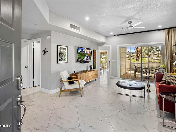 This stunning patio Home is fully remodeled with 2 bedrooms + loft with a Murphy Bed (3rd Bed). The Primary bedroom is downstairs. All rooms have incredible views of the Gainey Ranch golf course. This is a corner unit with a large patio and the only 2 car garage in the building. Even better is the fact that this home is right next the newly constructed clubhouse with a heated pool and spa, massive state of the art gym, pickleball, tennis, exercise and meeting rooms. Gainey Ranch is a gated community offering lock and leave security with an incredible Scottsdale location. Close to the best restaurants, entertainment and shopping in the Valley. HOA includes Water, Trash, Exterior Maintenance, Basic Internet & Cable and insurance. Home is move in ready!! Private Golf Course is separate.