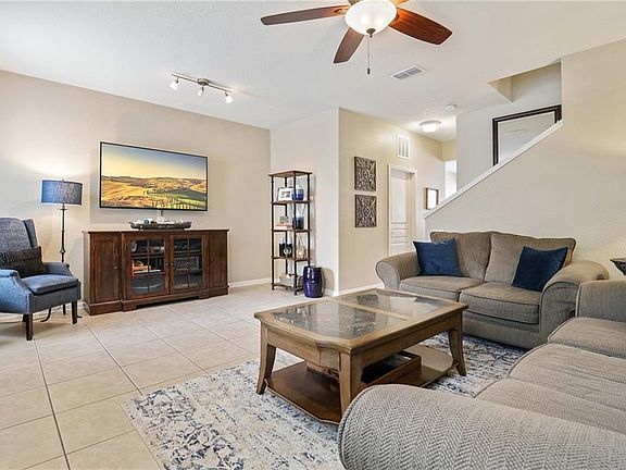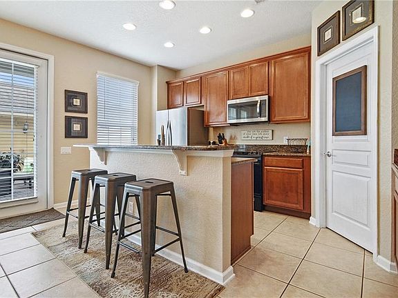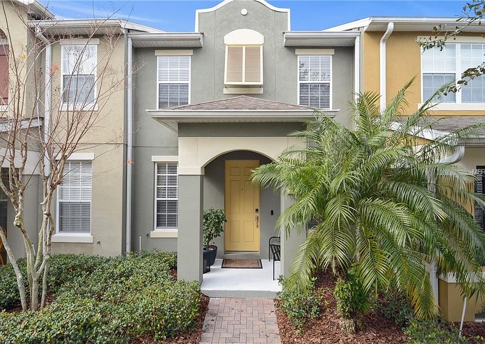 3 Bedroom, 2.5 bathroom Townhouse. FIRST FLOOR: 18 in tile floor throughout, large living room with upgraded ceiling fan, laundry room with wire shelves, half bath and kitchen with spacious dining area. Kitchen features: granite countertops, breakfast bar with room for seating, tall upper 42 in cabinets with molding, deep walk in pantry with under the stair storage, upgraded appliances, recessed lighting, chandelier in dinning area, and tall French doors that leads one out to the private, brick paved courtyard. The courtyard leads to a full size 2 garage, that has a large enough parking pad to parallel park one vehicle. SECOND FLOOR: 3 bedrooms and 2 bathrooms. The Roomy Master Bedroom has lots of natural light and walk in closet. The Master Bath has a double vanity, frameless glass shower, gentleman's height cabinets with drawers, cultural marble countertops and private commode. Other home features: ceiling fans in all 3 bedrooms, bathtub in bathroom 2, Simpli Safe security system, Ring Doorbell system, and patio furniture included with sale. The COMMUNITY features: large community pool with lap lanes, fenced playground, and bike/walking paths. The community is conveniently located to shopping, restaurants, area attractions, access roads and Windermere Schools.