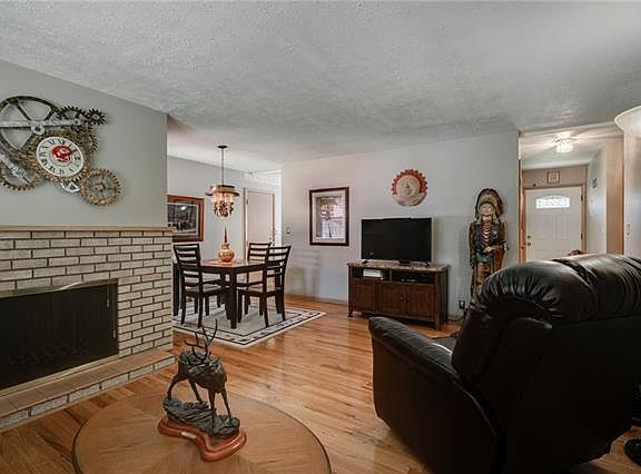 Lovely ranch home with great proximity to the ever growing downtown Overland Park! *BRAND NEW ROOF!* Large living room with hardwood floors features one of two fireplaces and dining room space. 3 bedrooms on the first level and an additional bedroom on the lower level with full bath. Finished walk-out lower level includes excellent tiled storage space and extended room with built in shelves. Extensive recreational and living room doubles entertaining space and features an accent brick wall with secondary fireplace. Backyard is beautifully manicured with rock landscaping around the perimeter and includes a wide sundeck and shed!