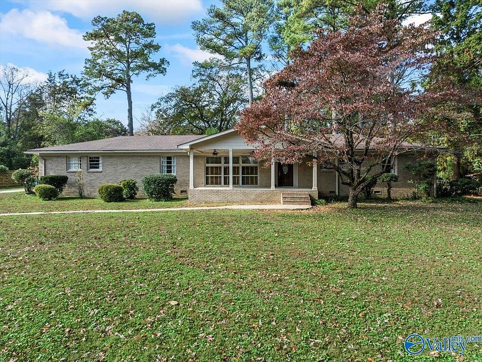 Brick rancher with welcoming front porch located in the heart of Southeast Huntsville. With an isolated primary suite and large gathering spaces, this home has an accessible floorplan. The kitchen opens to the family room & it has direct access to the rear patio. The 2nd bedroom has an ensuite full bath and hardwood floors. There is an oversized side entry 2 car garage with plenty of storage and workshop space. The level lot is over .6 acres and the rear yard is fenced. 4 Bedrooms and 3 baths.