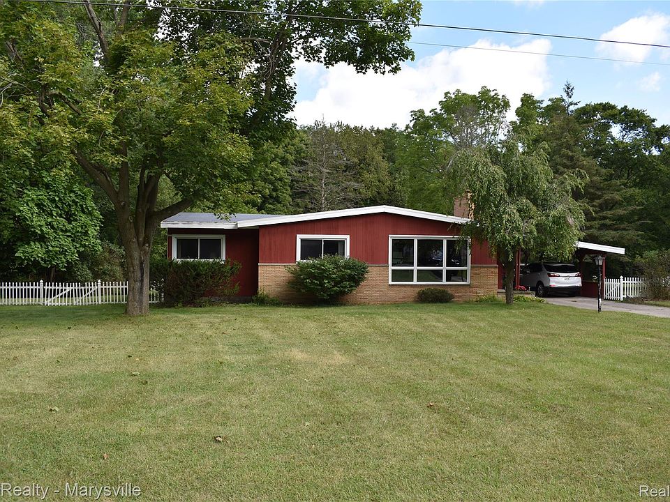 Charming countryside home located in Wales Township, Goodells—peaceful rural ambiance, great neighborhood. Peaceful paved road. Conveniently close to I-94, I-69, Port Huron and Marysville. Close to county park for entertainment and recreation. Three nice size bedrooms and a large full bath. Open concept between living room and kitchen, Easy to entertain company. Low maintenance, well maintained hard floors in the living room and bedrooms. Tile in the kitchen and bathrooms. Additional large 3 season room off the back with large windows. Home has been well maintained with the roof being replaced two years ago. Nice yard with room to grow. Several nice trees for shade. Refrigerator, stove, washer and dryer included. Many other furnishings in the house are negotiable.