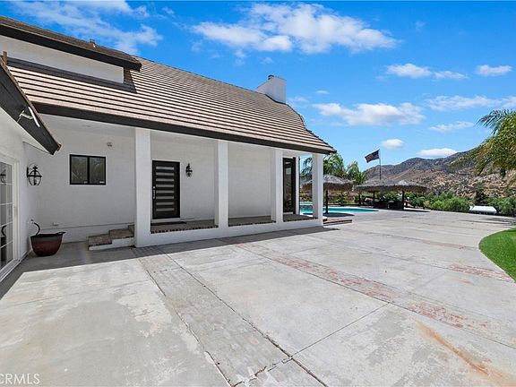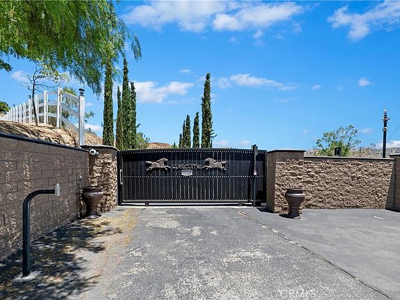 WELCOME TO THIS BEAUTIFUL RANCH STYLE HOME IN THE DESIRABLE AREA OF RECHE CANYON COMMUNITY..THIS GATED HOME IS SITUATED IN 6.11 ACRES WITH PLENTY OF USUABLE LAND. ENOUGH LAND TO BUILT A SECOND HOME. THIS 4 BEDROOM, 3 BATHROOM 2883 SQ. FT. HOME OFFERS OPEN FLOOR PLAN WITH CATHDERAL CEILINGS, BAY WINDOWS THAT OFFER AN AMAZAING MOUNTAINOUS VIEWS...LOTS OF NATURAL LIGHTING...TAKE A MOMENT TO ENJOY YOUR MORNING COFFEE.. ALONG WITH VIEW OF THE POOL...HARDWOOD FLOORING AND CARPETING THROUGH OUT THE HOME ALONG WITH RECESSED LIGHTING AND BEAUTFIL CHANDELIERS. 2 MASTER BEDROOMS. ONE DOWNSTAIRS WITH SLIDING DOOR THAT LEAD TO OUTSIDE OF HOME FOR PRIVACY AND ONE HUGH MASTER UPSTAIRS WITH A LOFT AND TWO BALCONIES, WALK-IN CLOSET, DUAL SINKS AND OVAL TUB. 2 ADDITIONAL ROOMS DOWNSTAIRS WITH JACK N JILL BATHROOM. BONUS ROOM CURRENTLY BEING USED AS A GYM. WATER SOFTNER SYSTEM THROUGH OUT HOME. PROPERTY ALSO FEATURES A BREEZEWAY BARN WITH 5 HORSE STABLES, TWO HORSE CORRALS AND TWO WASH RACKS, VERY LARGE DOG KENNEL, CHILDRENS PLAY GROUND, POOL AND SPA. PLENTY OF SPACE FOR YOUR TOYS, RV PARKING. THIS HOME HAS GREAT AMBIANCE FOR ENTERTAINING FAMILY AND FRIENDS..YOU WANT PRIVACY, THIS WOULD BE THE PERFECT HOME.