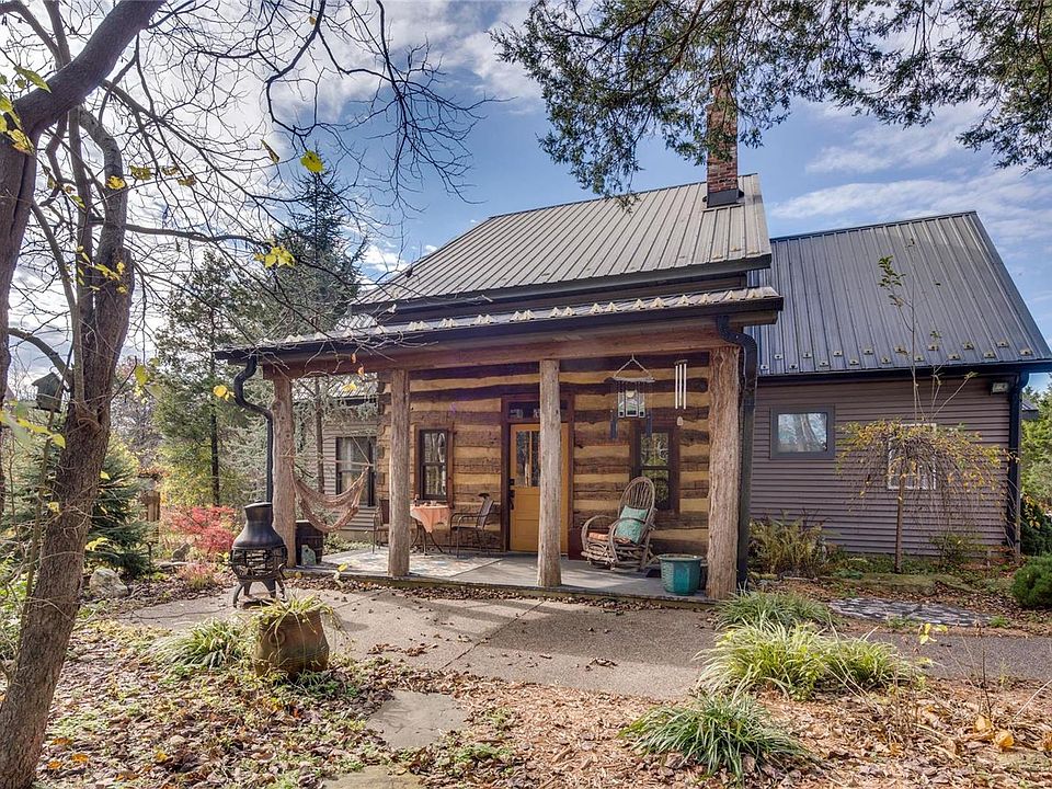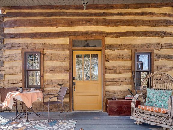 This beautiful, unique home sitting on 12 acres is sure to amaze! The home features an 1846 Log Cabin, once owned by German settlers, that is incorporated into the custom construction of this home. The cabin serves as the living room boasting 22 ft ceiling, the original flooring of the cabin and a beautiful floor to ceiling fireplace as the focal point. The sun-filled modern kitchen boasts gleaming white cabinets, plentiful counter space, breakfast bar, and stainless steel appliances. The master suite features a full bath with claw foot tub, shower and walk in closet. A second bedroom, full bath and laundry room finishes the main level. The versatile spacious loft can be used as a third bedroom or a family room. The covered front and side porch and large deck is ideal for outdoor entertaining. The garage/workshop, cookhouse, horse stable and gated access to the common ground and Big River only adds to the appeal of this fabulous home! A home warranty is offered for your peace of mind.