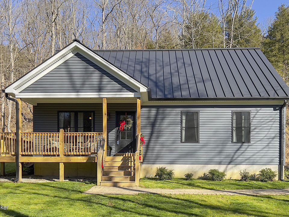 Escape the city where the stars are brighter and the sounds of Mother nature abound. 20 minutes to Prospect straight out Scenic Hwy 42. Nearly new 1.5 story open concept with volume ceilings and a great LVP flooring choice. Wrap around deck to enjoy the sound of the creek. Great looking High end finishes will compliment any decor. Full stainless steel appliance package. $40,000 metal roof that will last for many decades. The property has a Mini sewer treatment plant, (no sewer taxes) city water and high efficiency heat pump. Paver front walk to the front door. Most of the acreage is wooded with a nice size lawn area around the house. Plenty of guest parking and room to add a large garage. Just a couple minutes off US 42 on Hwy 524.