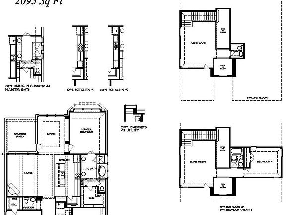 One Story Plan with 3 Bedrooms, 2.5 Baths, Master Bath has His amp; Her Vanities, Separate Tub amp; Shower, and Large Walk-in Closet.. Formal Dining Area, Study,Large Island Kitchen open to Family Room, Fireplace Covered Back Patio. This Plan offers an Optional 2nd Floor with Large Gameroomnbsp;with Half Bath or Optional 4th Bedroom amp; Full Bath as well as an option for both the Gameroom and Bedroom 4 with Full Bath.nbsp;