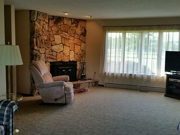 Large open floor plan with a 25 by 14ft living room featuring a woodburning fireplace. Spacious 14 x14ft kitchen with adjoining 14 by 10ft dining room. 3 bedrooms and 2.5 baths, full basement and a 2.5 car garage(attached). This home sits on 5 acres featuring a 32 by 48 ft pole barn and a 1/3 acre pond.