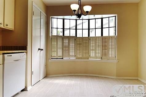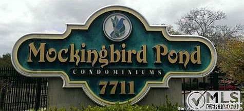 First floor condo Includes, dining room, living room, fenced patio and breakfast nook in full kitchen.Updated interior, tile,new lighting fixtures and paint, and new bathroom sinks and toilets.Mockingbird Pond is a quiet, substantially owner-occupied complex.U nit is located away from entrance.* Two exclusively assigned, covered parking spaces are close to front door.* Great location in NW San Antonio allows easy access to Medical Center. Outdoor In-Ground Pool. *July 2014 , new vainer wood flrs*