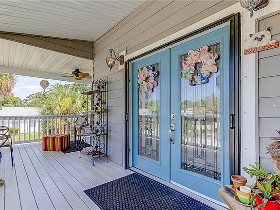 From the moment you step through the lead-glass double entry doors into this beautiful 3/2 stilt home you feel a sense of comfort. You are greeted with an open floor plan with vaulted ceilings, bamboo wood flooring and a gas fireplace. Custom kitchen features gorgeous birch cabinets; Silestone countertops with seamless sink; GE Monogram appliances include a professional 6-burner dual-fuel range. Ceiling fans in every room, plus new retractable screen for front double doors allow for heavenly breezes throughout. Spacious master bedroom has en-suite bath. The 3rd bedroom/office has a custom built "Murphy" bed system. Other features include a large laundry room, instant-on tankless gas water heater, and professional organization systems in closets and garage to maximize storage space. The exterior has custom aluminum Bermuda Shutters and hurricane-rated metal roof with titanium layer for extra insulation. High quality vinyl siding was added in 2018. This home provides great outdoor living space: a covered balcony and a fully fenced yard with huge stamped concrete covered patio- perfect for entertaining. Situated on a corner lot located just a block from one of SPB's mini parks where you can relax on a bench & enjoy a lovely intracoastal water view while watching boats or dolphins go by. White sandy gulf beaches are less than a mile away as are many restaurants, shops and the community center. Elevated property means low flood insurance rates.