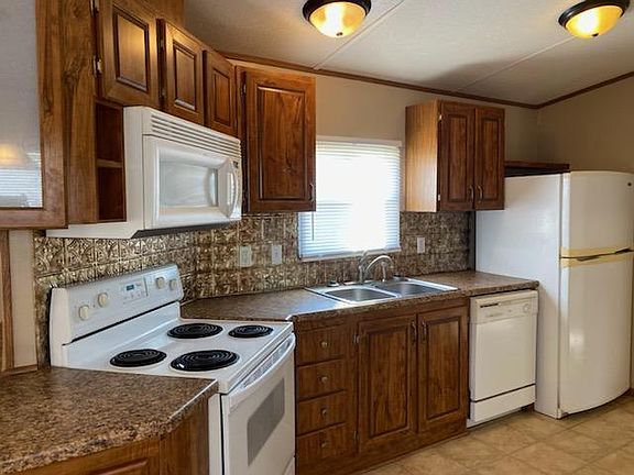 This home has a spacious living room that is great for entertaining guests at the Holiday Season, as it is open to the Dining and Kitchen area. The built-in cabinets in the Dining and Living area gives you room to store your extra kitchen appliances or china. The large walk in closet in the Master Bathroom has additional shelving for storing your purses or shoes! The home has a split Bedroom floor plan, and the second and third bedrooms have large closets. The Washer and Dryer Hook-Ups are located in their own room next to the kitchen. The home has a large front and large back deck, so you can pick which one you want to sit outside at to have your morning coffee. There is a large shed located on the lot for storing your Christmas Items and Lawn equipment. Two car, off the road parking is available under the 2 car carport. *The heat and water heater are Natural Gas (Summit Natural Gas Co.) and the Electric service is through Webster Electric in Marshfield MO. Natural Gas, Electric and Lawn maintenance are the Tenants responsibility. Don't want to mow the Lawn? Ask about Silver Bell's Lawn Mowing Service for Tenants for a low monthly rate! *Application Process and Application Fees apply. Please email for specific application information. *Silver Bell is a Pet Friendly Community, subject to Community Pet Rules and Regulations. Two inside pets per Leased home are allowed. Pets cannot be housed outside and must be on a leash accompanied by their Owner when outside. Pets must be, under 30 pounds or less, and current on their shots. Current shot records, proof of breed and weight and photos of pets must be returned with the Application. Pets must go through a temperament check before being approved. *A $250. Non-Refundable Pet Fee Applies. *Silver Bell offers 24/7 Emergency Maintenance on Leased Homes *Silver Bell is located in the Logan-Rogersville School District, and the bus picks up and drops off on-site. **Please email or call to schedule a viewing or to request an Application. Silver Bell Office Hours are Monday through Friday, 10:00 am - 5:00 pm.** Single Wide Mobile Home for Lease! One Year Lease required. Application Process and Fees Apply!