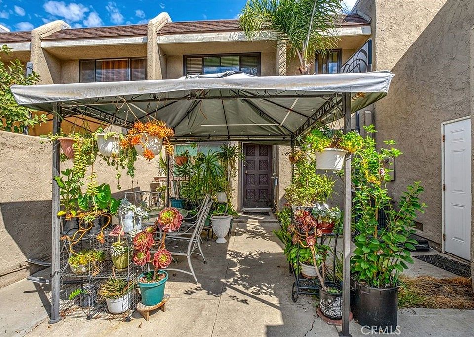 Welcome to this 3 bedroom 1.5 bath townhome with 2 car attached garage in the heart of Stanton. Great location on its own little cul-de-sac. Enter through the private gated front patio. A spacious formal living room has wood style flooring for easy maintenance. The gourmet kitchen has stainless appliances: new electric oven, also offers dishwasher and microwave. Granite counter tops, wood cabinetry and large walk-in pantry. Kitchen flows into the large family/dining room with tile flooring and ceiling fan. Large sliding glass door opens into a spacious private patio. 1/2 bath downstairs with inside laundry. New flooring on staircase. Upstairs has 3 bedrooms and full bath and shower. Large 2 car attached garage with direct access through the patio.