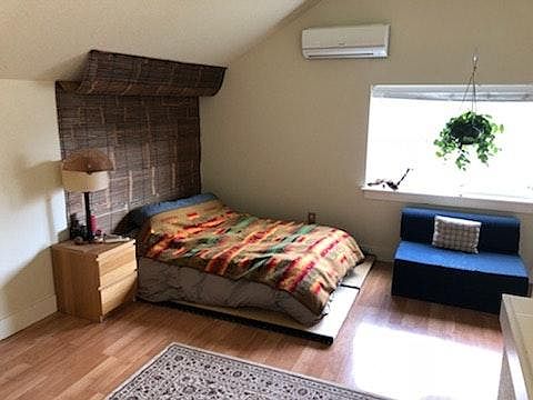 Custom house in the Cathedral Park neighborhood on North Portland. Less than a five minute walk to Cathedral Coffee and the Portway Tavern, and 10 a minute walk to downtown St. Johns. This house features: 22 foot vaulted ceiling. Tankless water heater- no gas bill. Ductless mini - split for AC and heat. Custom kitchen with gas stove and tons of storage in beautiful solid wood cabinets. Washer and dryer. Fenced, private yard. Owner pay trash and gas bill, tenant pays electric and water.