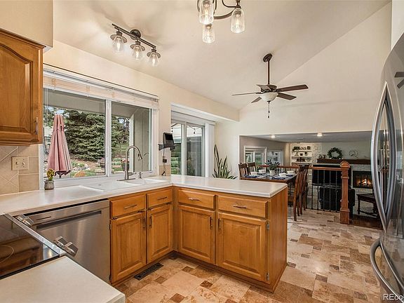 Beautiful home on a quiet cul de sac in the popular Foxridge neighborhood in award-winning Cherry Creek School District. Nicely updated throughout, this home is a gem with a wonderful open floorplan and a gorgeous yard! The main floor features vaulted ceilings, solid teak wood floors, and has a great flow between the kitchen, living room and dining room. Upstairs are 3 bedrooms and 2 updated bathrooms. The primary bedroom is spacious with a private en suite bathroom. The lower level has a cozy family room with a fireplace, a convenient dedicated laundry room and 1/2 bathroom, and an amazing sunroom with custom tile flooring and windows on all sides to enjoy in all four seasons. The highlight is the stunning yard, with a beautiful patio featuring custom lights and a fire pit for evening enjoyment and entertaining. Terraced gardens and mature trees make this yard a true oasis, which backs to a greenbelt with direct access to a walking trail that winds its way through the neighborhood. Large finished basement has egress window for a 4th bedroom, and a huge walk-in closet for storage. Many upgrades throughout, including: no popcorn ceilings, stove and dishwasher only 6 months old, fridge only 5 years old, roof only 9 years old, newer windows, and sewer replaced 2022. Perfect location in the neighborhood, with easy proximity to Foxridge Park, soccer field and playground, and the swimming pool: https://www.foxridgeclub.com. Foxridge is a vibrant neighborhood with a swimming pool and swimming pool and soon to be finished pickle ball courts, as well as many community events throughout the year: Holiday carriage ride, Easter egg hunt in the park, dumpster day, a community garden, 4th of July bike parade, Halloween costume parade, Turkey Trot, and a summer Fair: https://www.foxridgecommunity.com/events. Just minutes to shopping, trails, and parks, and easy access to Dry Creek Lightrail station, DTC, C470, and I25. A truly beautiful home!