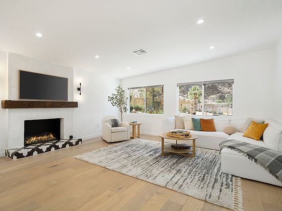 Available to Lease for Nov. 2025 - May 2026. Nestled in Indian Wells Country Club, this fully renovated 3 bedroom- 2 bath Mid-Century modern home combines modern conveniences with its original charm. The interior features beautiful white oak floors, an open fully-stocked Kitchen with Quartz counters and Stainless Steel Appliances, Breakfast Counter area with 4 bar stools. A light and bright Dining area for seating 6 - 8 with a wall of windows overlooking the Patio. Spacious Living Room offers a wood mantel accentuated by a charming smooth finished stucco Fireplace with Flat Screen TV above. The luxurious Primary Suite has a King Bed, Flat Screen TV, Desk and the bath has dual vanities and offers a large walk-in shower, there is a slider out to Patio & Spa area. Spacious Guest Rooms are beautifully appointed, both with Full Beds. Escape to a serene oasis with this exceptional patio retreat. As the sun sets, gather around the built in BBQ, Frig and Dinner table for an intimate evening with friends and family, accommodating up to 8 guests with the table transforming into a large shuffleboard game adding an element of fun and excitement to your gatherings. Unwind in style by the private salt-water Spa and rainfall Shower. Just steps to the community Pool. Minutes to El Paseo for Shopping, Dining & short drive to world class Golf & the Paribas Tennis Gardens.