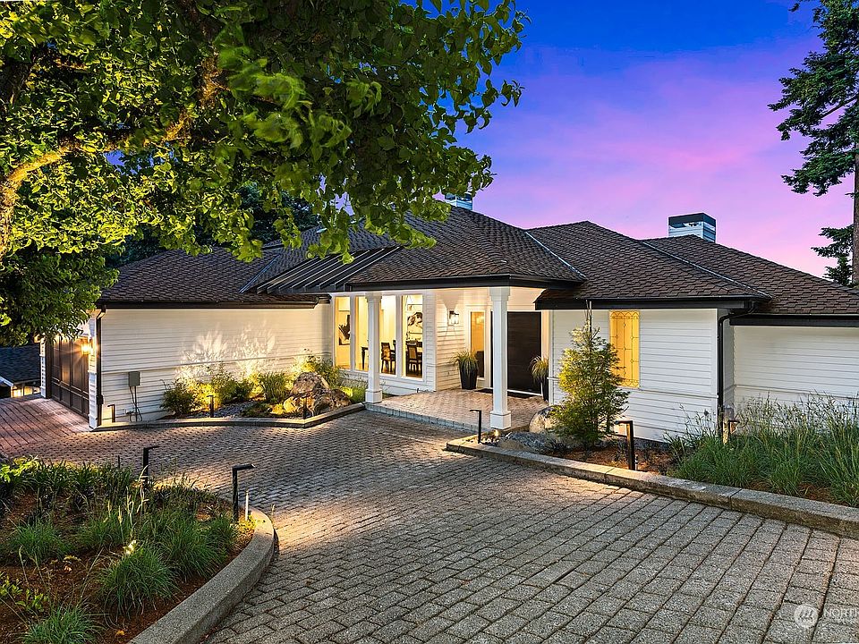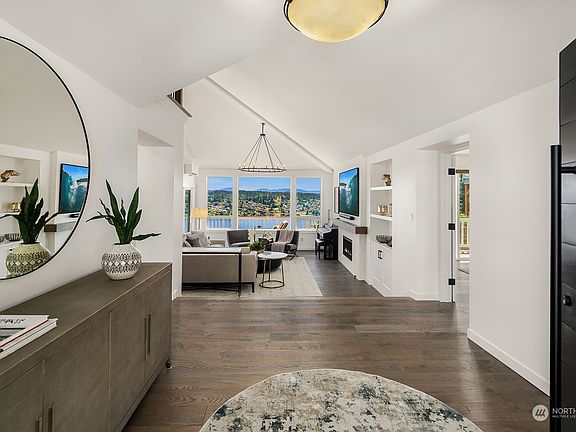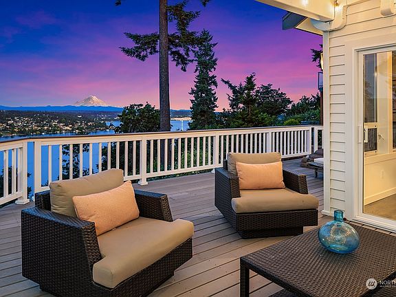Welcome to luxury living with a breathtaking vista of Lake Washington, the Cascades, and majestic Mt. Rainier. Nestled in serene Island Terrace, this beautifully remodeled home features state-of-the-art systems, stunning design & sparkling views. Custom pivot front door opens to wide-plank hardwoods & vaulted ceilings. Chef’s kitchen w/ high-end SS appliances. Main floor office or guest suite w/ built-in wall bed. Upstairs your dream primary suite awaits w/ luxe 5-piece bath, view deck w/ hot tub & walk-in closet. Downstairs, 3 more bedrooms, full bath & large rec room provide space for all. New boiler, in-floor radiant heat & mini-split A/C. Smart home w/ Cat 8 cabling, Sonos sound system, 320-amp panel, 2 Tesla chargers, generator & more!