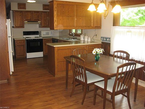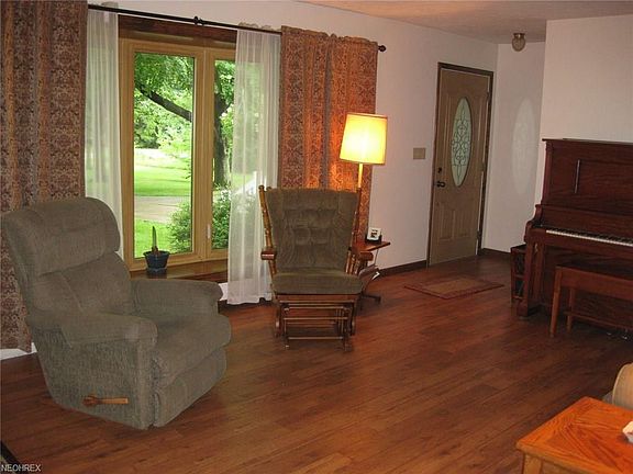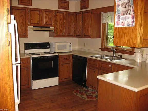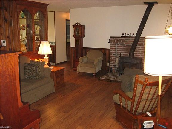 3 Bedroom 2 Bath Ranch in on 2 acres in Medina County's beautiful Sharon Township. The kitchen features custom built cabinets and pantry and is open to the dining area. A wood burning stove in the living room and fireplace in the family room lend a cozy warm cozy feel to the home. The full partially finished lower level provides additional living and work areas and plenty of storage. Improvements to the home are basement waterproofing, newer roof, siding, windows and laminate flooring. Sliding glass doors open to the Trex deck and the 1+ acre lushly landscaped private backyard - a great space to entertain, garden or just sit back and relax under the retractable awning. A country setting located only minutes away from shopping and freeway access.