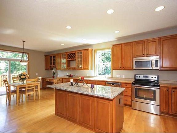Located in highly desirable Norttingham neighborhood, gorgeous impressively built Lundgren two story home with wrap around front porch. Beautiful floor plan with huge kitchen and room for 2 offices on main level. All maple woodwork, great potential to finish the walk out basement., Directions 94 to Weaver Lake Road West to Dunkirk South to Nottingham Pkwy Left at 78th to 77th to Comstock. Right to home.