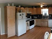 Fabulous home on very large, flat lot. Upstairs features a large eat-in-kitchen with oak cabinets, master bedroom with vaulted ceiling and two big closets, master bathroom with huge jetted tub, two other bedrooms and a bath, and a living room with vaulted ceiling. Downstairs has a finished den with fireplace, two-car garage, and a huge storage closet. There is laminate wood floors throughout the house and carpet in the bedrooms and in the downstairs den. There are lots of windows including three bay windows providing lots of natural light. The home has an Apollo hydro heat system which is recommended by allergists. This house is in a small neighborhood with one street in and two cul-de-sacs so it is quiet and great for kids.