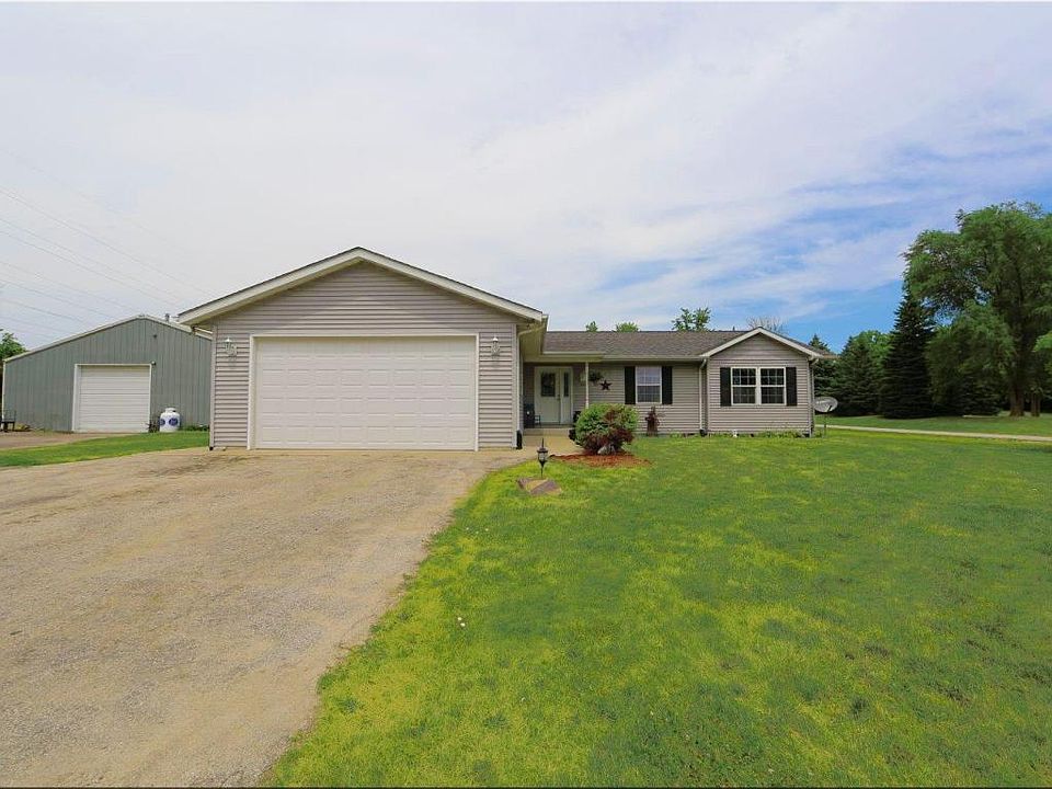 Perfect home for the person needing a space for an in-home business, a hobbyist / car enthusiast or someone with lots of toys to store! In addition to a spacious 3 bedroom, 2 bathroom ranch with full basement, you also get a 45x90 pole barn which includes a paint room and a heated & cooled space for an office. There is an extra tall carport to store a large boat or commercial truck. The home features a plenty of oak cabinets, double sided fireplace, dining room & eat-in book, 1st fl laundry, a master suite with whirlpool tub in large bathroom. There is a huge basement with endless possibilities. Basement half bath is currently not framed in but full ready to be finished. Buyer to verify sq footage and dimensions. Outside well for watering lawn only.