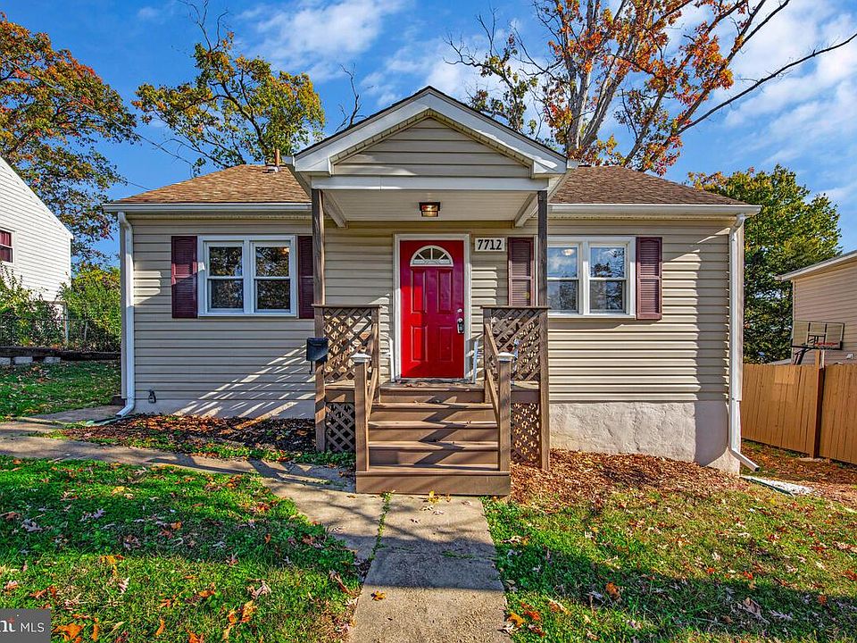 Four bedroom, two full bath Cape Cod in West Lanham Hills. Remodeled kitchen and baths. Replacement windows. Laminated floors in living room and bedrooms. Tile floor in kitchen. Fresh paint. Updated electric service. Two large sheds. Large deck overlooking backyard. Close to New Carrollton Metro and Purple Line.