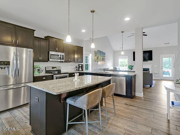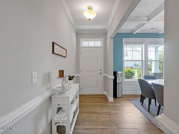 This 4 bedroom, 2 and a half bath beauty nestled in the quiet Gable Run community offers everything you want in your next new home! As you enter you are greeted with tons of great light and porcelain tile flooring with wood finish throughout the first floor living areas. The formal dining area is elegant with a coffered ceiling and chair rail, and the kitchen boasts granite counter tops, opulent cabinet storage, stainless steel appliances, and both an island and eat at bar. A vaulted ceiling and fireplace in the living area add beauty to the space which overlooks the screened in back porch. The first-floor primary suite has a tray ceiling, and the bath features a large walk-in closet with wood shelving, a double sink vanity, walk in shower and soaking tub. A laundry room and powder room complete the first floor. Upstairs, the loft is a great place for a media or game area, playroom, or it could even serve nicely as a home office. There are three additional bedrooms and another full bath as well. Two of the bedrooms have walk-in closets, one of which was used as a home office. Outside the covered porch opens to a large trex deck and the huge backyard. To the left of this home is a designated natural area so you have no immediate neighbor on that side. This home is perfectly located near area beaches, great schools, and local dining and shopping.
