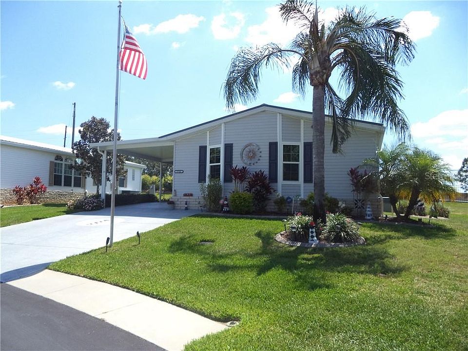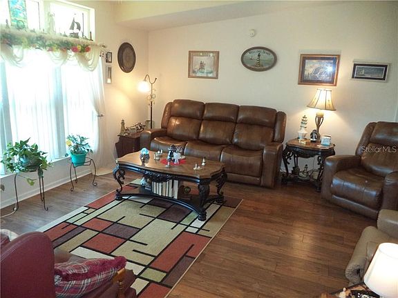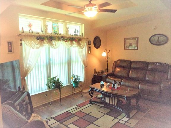Wow. This Beautiful home in Grand Horizons comes with $70,000 in upgrades and additions. Gorgeous landscaping with concrete curbing and lawn irrigation system. Comes complete with a finished and decorative driveway. Once inside you will fall in love with the wood laminate floors and trey ceilings in the spacious living room. This large kitchen boasts custom cabinets, stainless steel appliances, and a glass back splash. All this plus plenty of counter and storage space. The pantry comes with self closing doors. The master bedroom has great natural light and a ceiling fan. The master bath has a granite counter top, dual sinks, upgraded faucets and a large ceramic tiled shower. The Florida room comes with its own AC unit. Recently added huge back porch with easy access to workshop and covered golf cart parking. All this plus newer A/C, metal roof with warranty, and dual pane windows. Call now and start enjoying the Florida lifestyle.