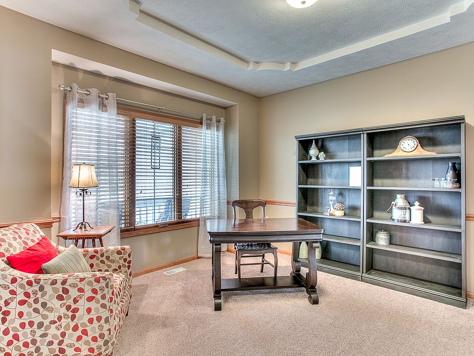 • Living Room Desc: Wall/Wall Carpeting, Ceiling Fans, Window Covering, 9'+ Ceiling