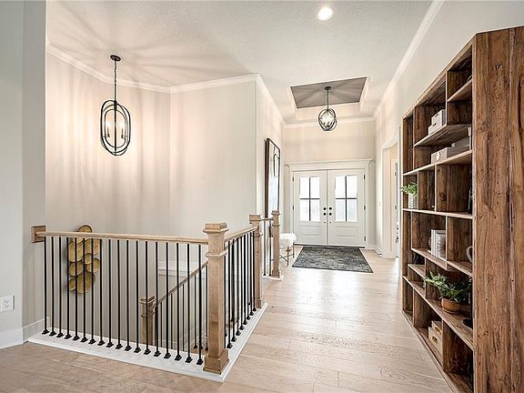 *Fall Parade of Homes 1st Place in Distinctive Plan & Design & 2nd Place Pick of the Parade Winner!!** New to Benson Place is the Saddlebrook Reverse by award-winning SAB Homes! This well-thought-out reverse plan with plenty of open spaces and bedrooms to make it an entertainer’s dream for hosting gatherings and guests. The spacious great room adjacent to the kitchen and dining room looks out to the covered deck and provides room for everyone to enjoy time together. The walk-in pantry even has a pass-through to the laundry room that is also accessible to the mud hall. On the main floor, you’ll find a primary suite that is well-appointed and large with a four-piece bathroom and extra-large walk-in closet. Another bedroom with a complete bath on the main floor can be an office or guest suite. At the garage entry is a mud bench and closet for plenty of storage options. The lower level has a giant family room, a full L-shaped wet bar, a powder room, and two extra bedrooms with private vanities and a shared bath, all while still having plenty of unfinished storage space. The family room walks out to a private backyard and green space. This home is now complete, furnished, and GORGEOUS!! Benson Place residents enjoy an abundance of amenities including two community swimming pools, children’s splash park, fishing lake, playground, ample green space, scenic nature trails. Close proximity to major highways and interstates allows for easy access to downtown Kansas City, the new Kansas City International Airport and several of the area’s top shopping and entertainment centers.