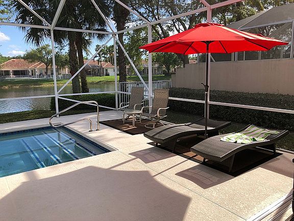 Beautiful 3/3 with den pool home in Riverwalk with all new baths and porcelain tile floors Meticulously maintained, the fussiest buyer will be pleased! Riverwalk is an exclusive community conveniently located near the Turnpike and features a manned gate, tennis, swimming, fitness... a tranquil setting nestled in the hustle of West Palm Beach. This beautiful home has tasteful upgrades including dark wood desk and shelving built into the office, window fixtures, surround sound, and all closets have built in shelves. The living room has stunning built in display shelves to hold your treasures and art.The pool is screen enclosed and the backyard aligns with a peaceful canal. The home's central air is less than 3 years old. The master suite features a his&hers bathroom with separate plumbing and sinks and a hallway full of closets. French doors open into the second bedroom and the third bedroom has a built in dresser/desk. A bonus feature in the laundry room is a full sized sink. The two car garage also has more shelving and you will also find the central vacuum there for the entire house. Beautiful views while dining at your table, plenty of outdoor patio space to entertain around the pool. This Oakmont model was built in 2000 during the last phase of development in Riverwalk. Please make an appointment to see this gem! This is an AS-IS Sale, Buyers are responsible for their own due-diligence and it is recommended that they not rely on the information herein. Sizes and measurements are approximate. Information deemed reliable but not guaranteed. Listing is subject to change or withdrawal at any time and without notice or penalty. No representation or warranties are expressed or implied in this listing. Brokered And Advertised By: True Floridian Realty Listing Agent: Yehoshua Blauch