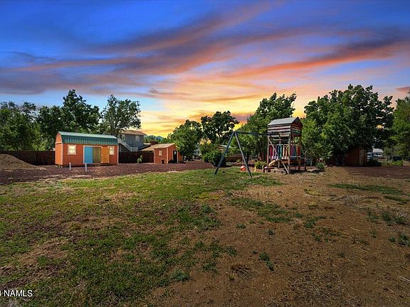 Looking for the perfect family home in a safe, open skies neighborhood near Flagstaff? Close to Cromer Elementary school, this 1953 square foot, 4 bedroom, 2 bath home with TWO bonus rooms (play room and homeschooling room?) and lots of storage is the perfect place for your large family. The kids will love the colorful interior (no need to paint) and you will love baking cookies with your kids in the sunny yellow kitchen with new, easy access bottom kitchen drawer cabinets that make it easy for the kids to get the things you need. The extra cabinets and drawers in the dining area make easy access for your kids' snacks. There's space for both a refrigerator and an upright freezer; great for large families. A pantry with outside door access just off the kitchen has plenty of room for all your food storage needs and easy to bring in groceries after shopping, too. A closet inside the entry area is great for storing your kids' sports gear, family games, or homeschool supplies. There's also a coat closet. Separate laundry room has two drying poles for hanging clothes, a shelf and two cabinets; all with a door to keep things out of sight. Kids' colorful bedrooms have big windows with easy, low exits. Front and back lawns are rocked for easy care with a natural play area for the kids that includes a permanent play structure. Range microwave has dedicated, single circuit plug; a second single circuit dedicated plug is just above the dining area counter if you want a second microwave. Second electric box with room for more fuses is already installed (2022) along with the RV plug in (2023) and a nearby hose for water for the RV. Four outside electric outlets are great for plugging in tools or holiday decorations. Kids want to do 4-H and raise goats or chickens? They can in the back half acre!