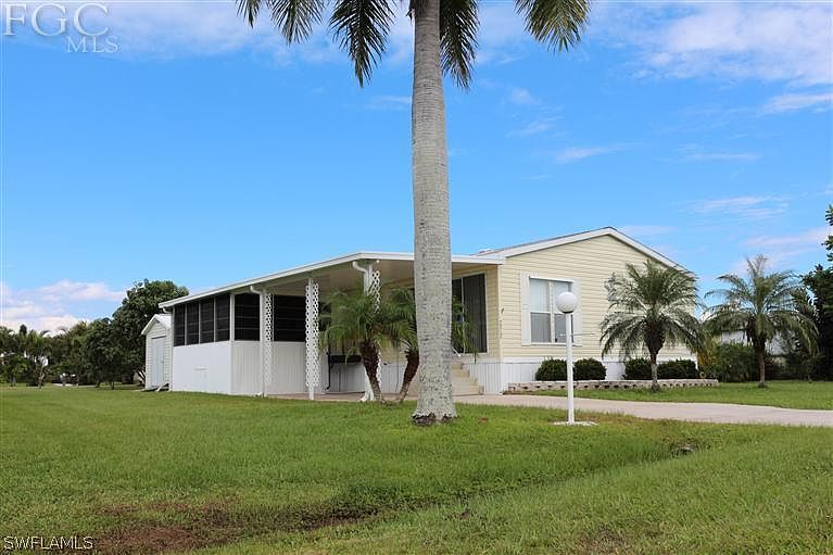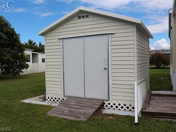 Well maintained manufactured home in 55 or older community. New in 2005, completely and tastefully furnished including kitchen items and linens. Beautiful bright white with loads of storage space. Side porch with A/C for island living. Lots of storage space including an outdoor shed. Low homeowner fees. This home is entirely handicapped accessible including a wheel chair lift. Home also has hurricane shutters. Close to marinas, post office and restaurants. Please don't miss this one - call for a private showing today.